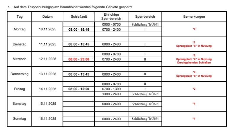 7. ACHTUNG: Lärmimmissionen können, auch bei am Schiessen unbeteiligten Personen