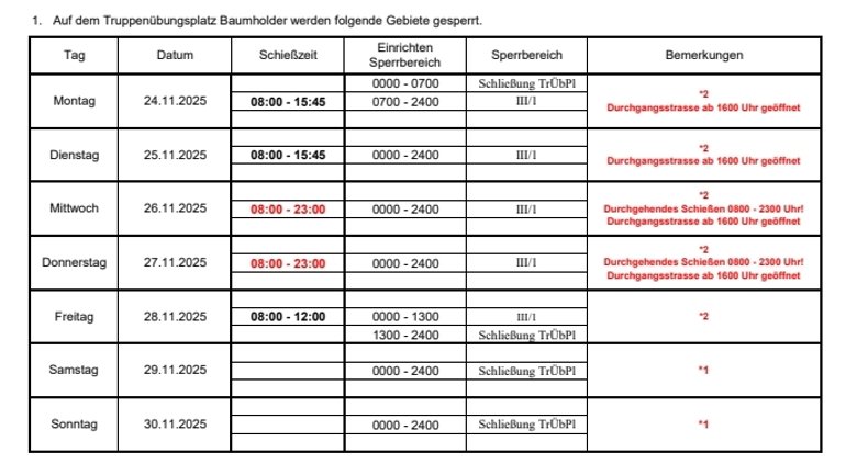 7. ACHTUNG: Lärmimmissionen können, auch bei am Schiessen unbeteiligten Personen