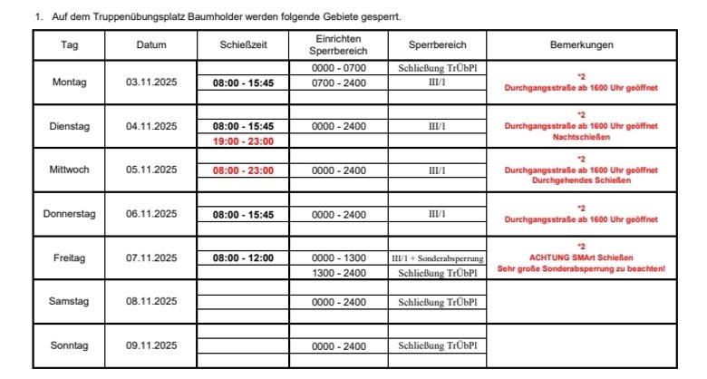Einweisung durch Truppenübungsplatzkommandantur betreten.